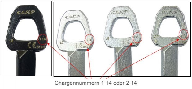 Der Bersportausrüster Camp ruft Universal Schlaghaken zurück. Als Grund für die Maßnahme nennt das Unternehmen eine mangelhafte Materialverbindung zwischen Kopf und Haken. Demnach wurde beobachtet, dass die Haken bereits beim Einschlagen Risse an der Verbindung aufweisen oder brechen können. Im ungünstigsten Fall besteht Lebensgefahr