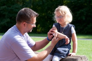 „Kleine Splitter, die aus der Haut herrausragen oder nicht tief in der Haut stecken, können Sie vorsichtig mit einer Pinzette entfernen. Auch hier sollte die Stelle anschließend gesäubert und abgedeckt werden“, empfiehlt Hoffmann.