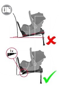Ulm, August 2011 – In Ausnahmefällen kann es dazu kommen, dass der Winkel der Base im Zusammenhang mit dem Autositz zu steil ist, wodurch unter Umständen der Kopf des Babys nach vorne fällt.