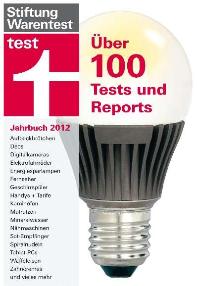 Das test Jahrbuch 2012 hat 272 Seiten und ist für 9,80 Euro ab dem 3.12.2011 im Handel erhältlich oder kann online unter www.test.de/shop bestellt werden.
