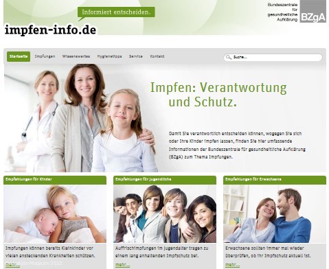 Die Bundeszentrale für gesundheitliche Aufklärung (BZgA) hat auf ihrer Internetseite zum Thema Impfen http://www.impfen-info.de eine Mediendatenbank eingerichtet die einen aktuellen, bundesweiten Überblick über bereits vorhandene Informationsmaterialien und -angebote rund um das Impfen bietet. Derzeit verfügt die Datenbank über mehr als 180 Einträge von etwa 60 verschiedenen Anbietern.