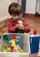 gefährliche Gegenstände wie Putzmittel und Medikamente unerreichbar für Kinder aufzubewahren