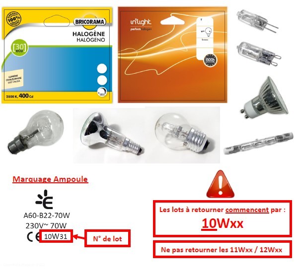 Rückruf: Bricorama ruft Halogenlampen der Marke Marke Bricorama und In Light zurück