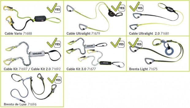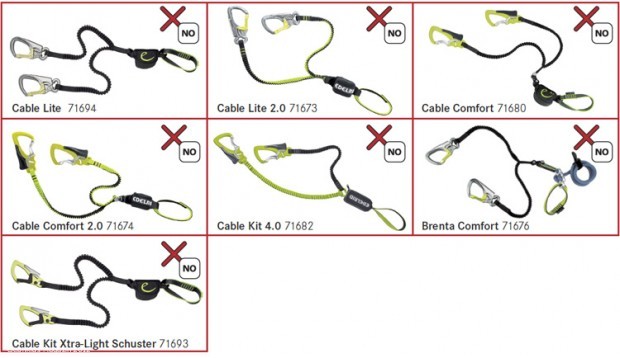 Nicht vom Rückruf betroffen sind die EDELRID Klettersteigsets Cable Vario, Cable Ultralight, Cable Ultralight 2.0, Cable Kit, Cable Kit 2.0, Cable Kit 3.0, Brenta Lite, Brenta de Luxe.