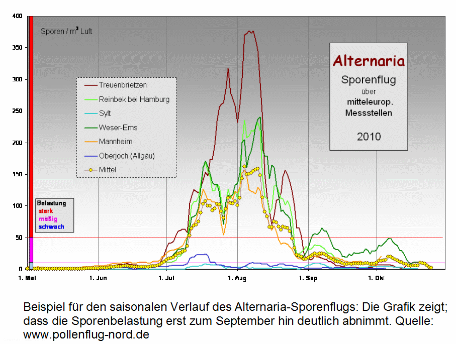1. Quelle: Pulimood et al.: Epidemic asthma and the role of the fungal mold Alternaria alternate; J Allergy Clin Immunol. 2007 Sep;120(3):610-7. Epub 2007 Jul 10.