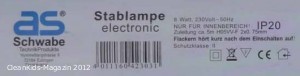 Bei einer internen Qualitätsprüfung wurde festgestellt, dass bei oben dargestellter Stablampe „electronic“ in einzelnen Fällen, aufgrund eines Konstruktionsfehlers, die Befestigungsschraube des Handgriffes unter Strom stehen kann.