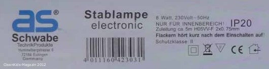Da wir diese Stableuchte sofort aus dem Verkauf genommen haben, sind nur einige wenige Leuchten in Umlauf geraten. Falls Sie eine solche Leuchte bei Globus gekauft haben, sollten Sie diese nicht mehr verwenden und umgehend vom Stromnetz trennen.