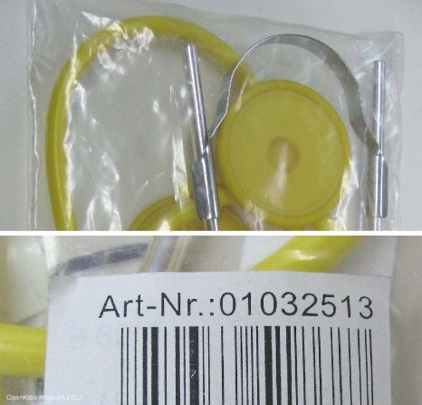 Das Bundesamt für Verbraucherschutz und Lebensmittelsicherheit meldet über das behördliche Warnsystem ICSMS (Information and communication system for pan-european market supervision) ein Kinder-Spielzeugstethoskop mit verbotenen Weichmachern.