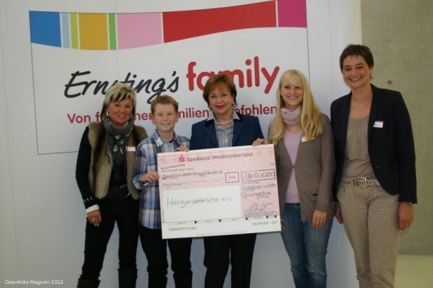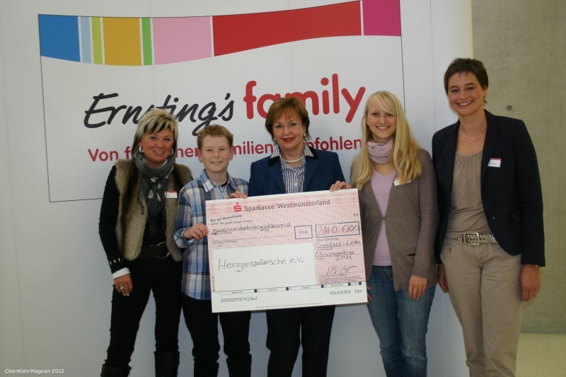 Es gibt Schicksale, bei denen man nicht wegschauen kann. Schicksale kleiner und großer Kinder, die wissen, dass sie an ihrer unheilbaren Krankheit sterben müssen. Schicksale behinderter Menschen, die sich doch nur ein ganz normales Leben wünschen. Wenn andere betreten wegschauen, schauen wir genau hin. Und helfen. Seit der Vereinsgründung 1992 sammeln wir von Ernsting’s family regelmäßig Spenden für „Herzenswünsche“. Einen Großteil spenden unsere hilfsbereiten Kundinnen und Kunden direkt in den Filialen, den anderen Teil steuern wir unternehmensseitig bei. Seit 2009 heißt es zusätzlich noch: Herzenswünsche goes Fashion! Jährlich kreiert unsere Designabteilung eine eigene Charity-Kollektion, bestehend aus Herzenswünsche-Bär & Co., bei der von jedem verkauften Artikel 50 Cent an den gemeinnützigen Verein gehen. So konnten wir seit 1992 den Verein und die schwerkranken Kinder und Jugendlichen mit knapp 2,5 Mio. Euro unterstützen.