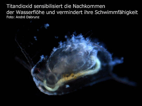 Die Empfindlichkeit der Tiere wurde anhand ihrer Schwimmfähigkeit abhängig von verschiedenen Konzentrationen von Titandioxid festgestellt. Durch eine beeinträchtigte Schwimmfähigkeit der Nachkommen ist möglicherweise deren Überlebensfähigkeit eingeschränkt und die Organismen könnten auch sensibler auf andere Stressfaktoren wie Pestizide oder Metalle reagieren. Bei der Elterngeneration sind dagegen auch nach längerer Einwirkung keine Folgen erkennbar. Ob ähnliche und weitere Effekte bei anderen Nanomaterialien oder Organismen auftreten, ist derzeit unbekannt.