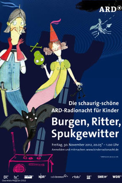 Beim Hörspiel „Burghof des Schreckens“ können Kinder live miträtseln, Autorin Kirsten Boie liest aus ihrem Buch „Der kleine Ritter Trenk“ und nach Mitternacht treibt „Das Gespenst von Canterville“ sein Unwesen. Ausgestrahlt wird die ARD Radionacht gemeinsam von Bayern 2, hr2, MDR Figaro, NDR Info, Bremen Vier, radioBERLIN 88,8, SR 1, SWR 2, WDR 5 und im Internet unter www.KiRaKa.de.