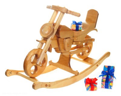 Das Motorrad- oder Chopper-Schaukelpferd ist komplett aus Massivholz gefertigt, wodurch es leicht instand gehalten werden kann und auch dem Öko-Bewusstsein vieler Eltern entspricht.