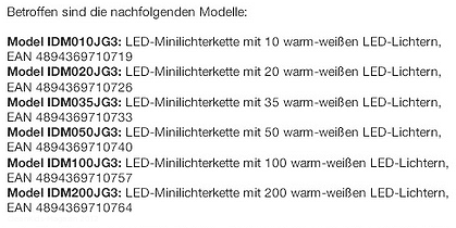 Die betroffenen Lichterketten wurden seit Oktober 2012 verkauft und können gegen Kaufpreiserstattung in allen Galeria-Kaufhof-Filialen zurückgegeben werden.