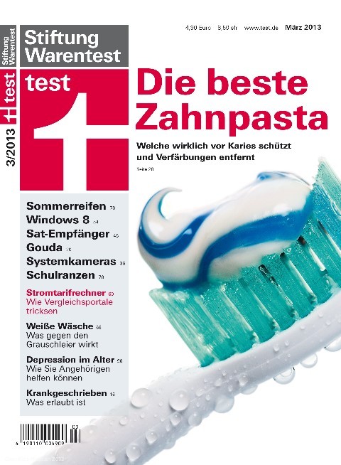 Der ausführliche Test Zahnpasta erscheint in der März-Ausgabe der Zeitschrift test (ab 22.02.2013 am Kiosk) und ist bereits unter www.test.de/zahnpasta abrufbar