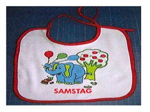 Von diesem Rückruf betroffen sind nur das „Samstags-Lätzchen“ mit diesem Aufdruck und mit Kaufdatum: Januar bis Mai 2013