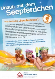 Tipps dafür bietet die kostenfreie, laminierte Klappkarte „Urlaub mit dem Seepferdchen“ der Aktion DAS SICHERE HAUS (DSH).