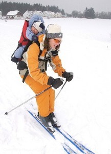Gefährlicher Winterspaß: Kinder huckepack auf der Piste