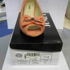 | Beschreibung: | Korallenfarbene Damen-Schuhe, mit Schleifenpplikation auf der Vorderseite; Futter und Decksohle in hellbraunen Leder, braun Außensohle, |