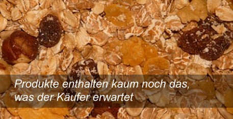 Oftmals versprechen die Bezeichnung und die Bebilderung wertvolle Zutaten. Die Zutatenliste offenbart, wie viel hiervon wirklich im Produkt steckt. Zutaten, die an erster Stelle stehen, sind mengenmäßig am meisten enthalten. So entpuppt sich manche Kräutermischung als ein Gemisch aus vorwiegend Salz, Geschmacksverstärkern und Zucker. Auch wer sich morgens mit Nüssen den ersten Nährstoffkick holen will, sollte bei fertigem Nussmüsli aufpassen. Dieses enthält mitunter gerade einmal fünf Prozent Nüsse. Wer die Verpackung vor seinem geistigen Auge in hundert Teile teilt, merkt rasch, dass fünf Teile nur einen winzigen Anteil des Produkts ausmachen.