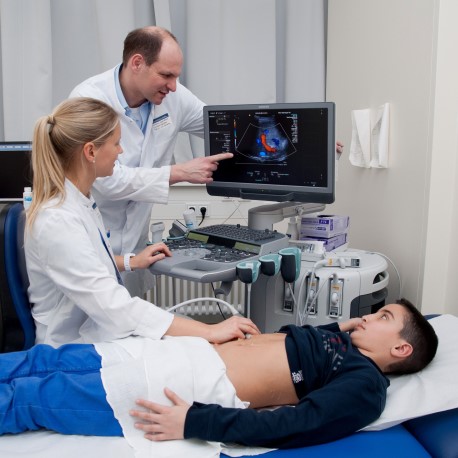 Ultraschalluntersuchungen haben in der Kinderheilkunde einen sehr hohen Stellenwert, da sie eine schonende Schnittbilddiagnostik ohne Strahlenbelastung ermöglichen. „Die hohe Auflösung des neuen Geräts erleichtert die Diagnostik deutlich und kann eventuell in Zukunft einige stärker belastende Untersuchungen wie Computer- oder Magnetresonanztomographie ersetzen“, erklärt Privatdozent Dr. Jens-Peter Schenk, Chefarzt der Sektion Kinderradiologie am Zentrum für Kinder- und Jugendmedizin Heidelberg. Gerade die hochauflösende Computertomographie wird wegen ihrer hohen Strahlenbelastung bei Kindern so selten wie möglich eingesetzt. Kernspin-Untersuchungen dauern mindestens 30 Minuten – besonders den kleineren Patienten müssen dazu Beruhigungsmittel verabreicht, selten müssen sie sogar narkotisiert werden. Eine Ultraschall-Untersuchung dagegen ist in rund zehn Minuten erledigt, ist beliebig wiederholbar und kann im Beisein der Eltern durchgeführt werden. Beruhigungsmittel sind nicht nötig.
