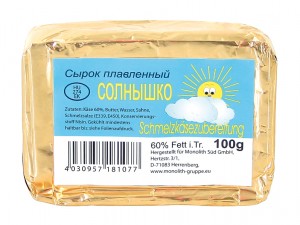 Aus Gründen des vorbeugenden Verbraucherschutzes ruft die Monolith Süd GmbH den Artikel Schmelzkäsezubereitung „Solnyschko“ 60% Fett i.Tr , 100 g zurück.