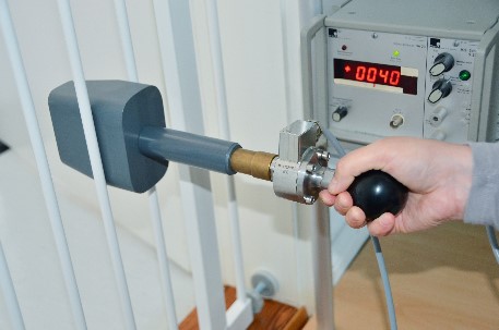 Im Labor wurde mithilfe einer Hüftschablone geprüft, wie stabil die Gitter der Kindersicherungen sind. – Bild: ÖKO-TEST