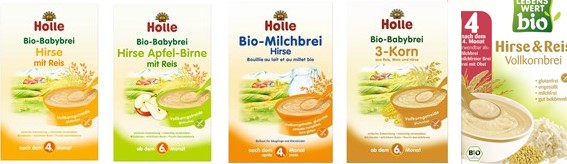 Die freiwillige Rücknahme betrifft alle Chargen folgender Holle Hirse-Brei-Produkte: