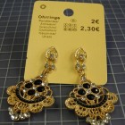 | Beschreibung: | Paar goldfarbene Ohrringe,aus Metall, mit schwarzen und farblosen dekorativen Steinen, Verkauft auf Kartonblister |