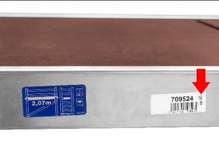 Die Gerüst- und Seriennummern finden sich auf einem Aufkleber an der Seite der Gerüstbühne – Bild: Hymer-Leichtmetallbau GmbH & Co. KG