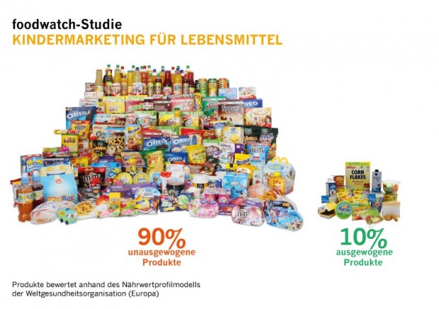 Berlin, 24. August 2015. Die seit 2007 bestehende freiwillige Selbstbeschränkung der Lebensmittelindustrie beim Kindermarketing ist wirkungslos: Die Hersteller bewerben in Deutschland weiterhin fast ausschließlich ungesunde Produkte gezielt an Kinder – obwohl sie sich im sogenannten „EU Pledge“ zu einem verantwortungsvollen Marketing verpflichtet haben. Das belegt eine Studie von foodwatch, die die Verbraucherorganisation heute gemeinsam mit der Deutschen Adipositas Gesellschaft, der Deutschen Diabetes Gesellschaft und diabetesDE – Deutsche Diabetes-Hilfe in Berlin vorgestellt hat. Für die Studie hat foodwatch alle an Kinder vermarkteten Produkte derjenigen Hersteller unter die Lupe genommen, die den „EU Pledge“ unterzeichnet haben – mit eindeutigem Ergebnis: Trotz der Selbstverpflichtung sind 90 Prozent von insgesamt 281 untersuchten Produkten keine ausgewogenen Kinderlebensmittel nach den Anforderungen der Weltgesundheitsorganisation (WHO). Gerade einmal 29 Produkte im Test dürften nach den Kriterien der WHO-Experten an Kinder vermarktet werden.