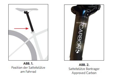 Der Fahrradhersteller Trek informiert über einen Sicherheitsrückruf zu Trek Fahrrädern, die mit mit einer Approved Carbon-Sattelstütze von Bontrager (siehe Abb. 1 und 2) ausgestattet sind. Das Festziehen der Sattelklemme kann bei den oben erwähnten Modellen zur Beschädigung der Sattelstütze führen. Diese Beschädigung kann zur Materialermüdung und schließlich zum Reißen oder Brechen der Sattelstütze führen. In diesem Fall kann der Fahrer die Kontrolle über sein Fahrrad verlieren.