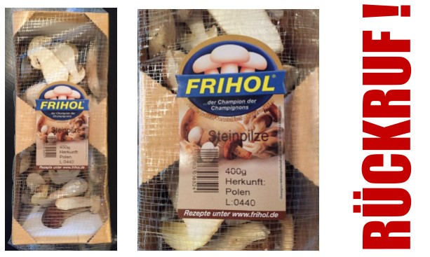 Die Frihol Champignon Vertriebsgesellschaft mbH ruft „Frische Steinpilze in Papierkörben zu 400g“ mit der Losnummer L0440 aus Polen zurück. Im Verkauf waren die betroffenen Pilze bei Kaufland