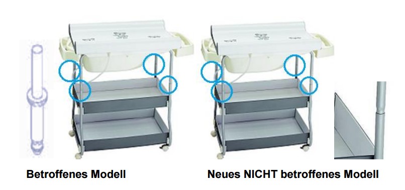 Nachfolgend sind das betroffene, ältere (Bild links) und das nicht betroffene, neue Modell (Bild rechts) dargestellt: