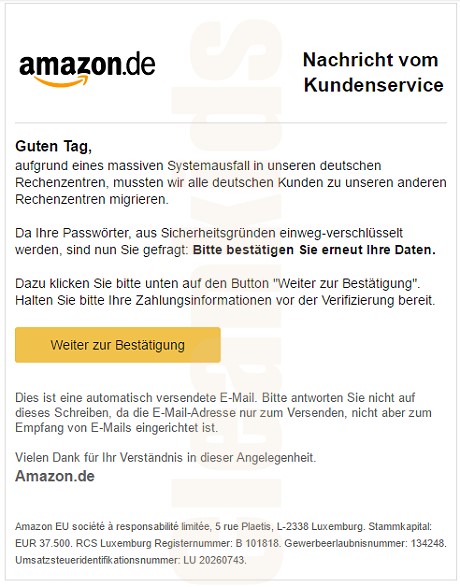 Wer bereits Daten übermittelt hat, sollte schnellstmöglich die bei Amazon hinterlegten Kreditkarten und Bankkonten auf unrechtmäßige Abbuchungen hin kontrollieren und die Zugangspasswörter ändern! Außerdem sollte der Computer mit einem aktuellen Virenscanner überprüft werden
