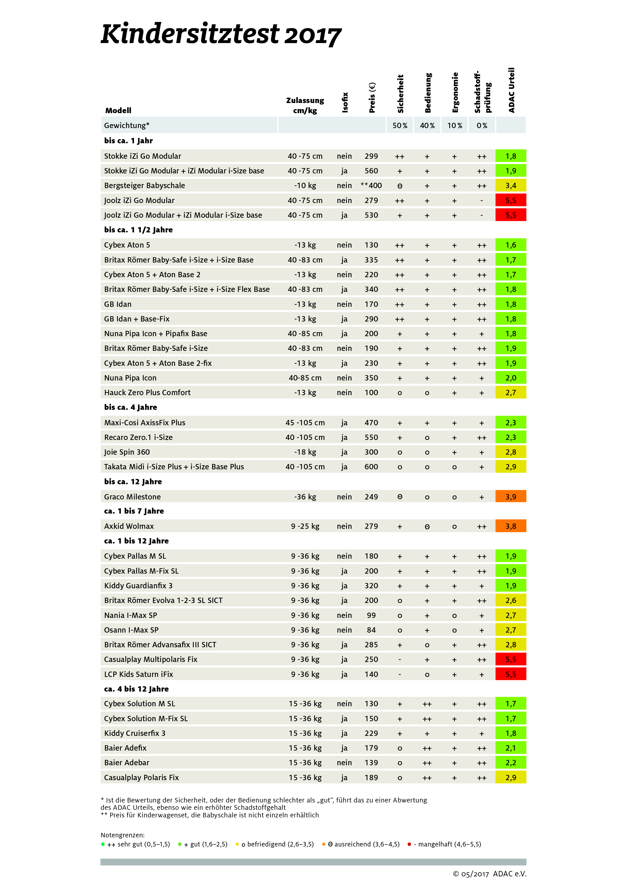 Detailergebnisse zum ADAC-Kindersitztest > mehr zu Kindersitzen >