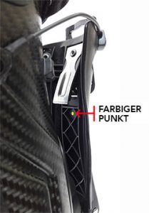 Die betroffenen Procline Boots wurden zwischen 1. November 2015 und 31. März 2017 hergestellt und sind an einem fehlenden farbigen Punkt auf der Innenseite des Spoilers (siehe Bild oben) zu identifizieren