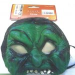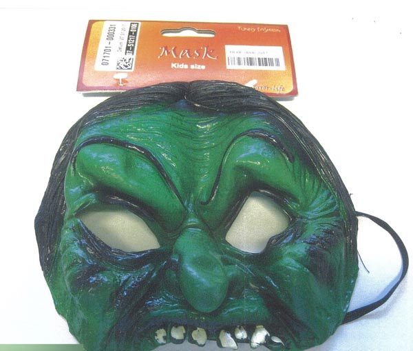 | Beschreibung: | Grün / schwarze Plastikmaske mit gelb / orangem Kartonanhänger. |