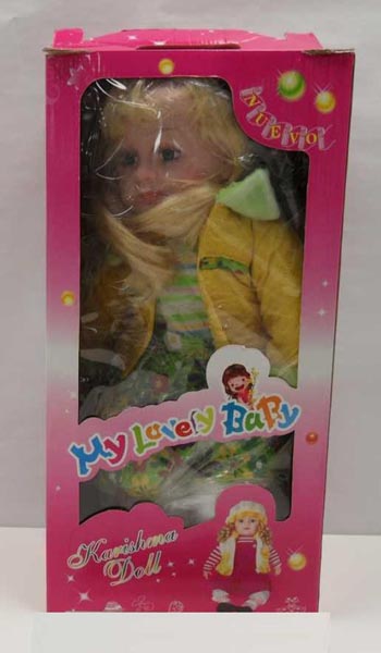| Beschreibung: | Batteriebetriebene Babypuppe, verpackt in einer Pappschachtel mit transparentem Fenster |