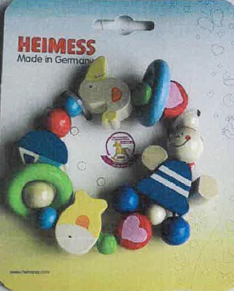 Das europäische Schnellwarnsystem RAPEX informiert über eine mögliche Erstickungsgefahr durch verschluckbare Kleinteile, die sich vom Babygreifling von Heimess lösen können.