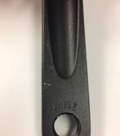 Die Kurbel-Modellnummer AC30 befindet sich an der Innenseite der beiden Tret-Kurbelarme, und die Kurbellänge ist am Ende jedes Kurbelarms eingeprägt.