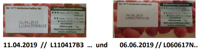 Mindesthaltbarkeitsdatum (MHD) 11.04.2019 sowie 06.06.2019