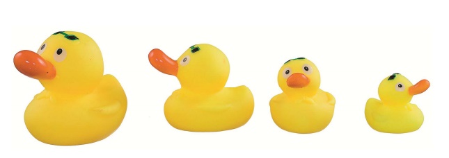 Artikelbeschreibung: Badeentenfamilie bestehend aus 4 Quietscheenten in verschiedenen Größen: 12, 9, 8 und 6 cm lang