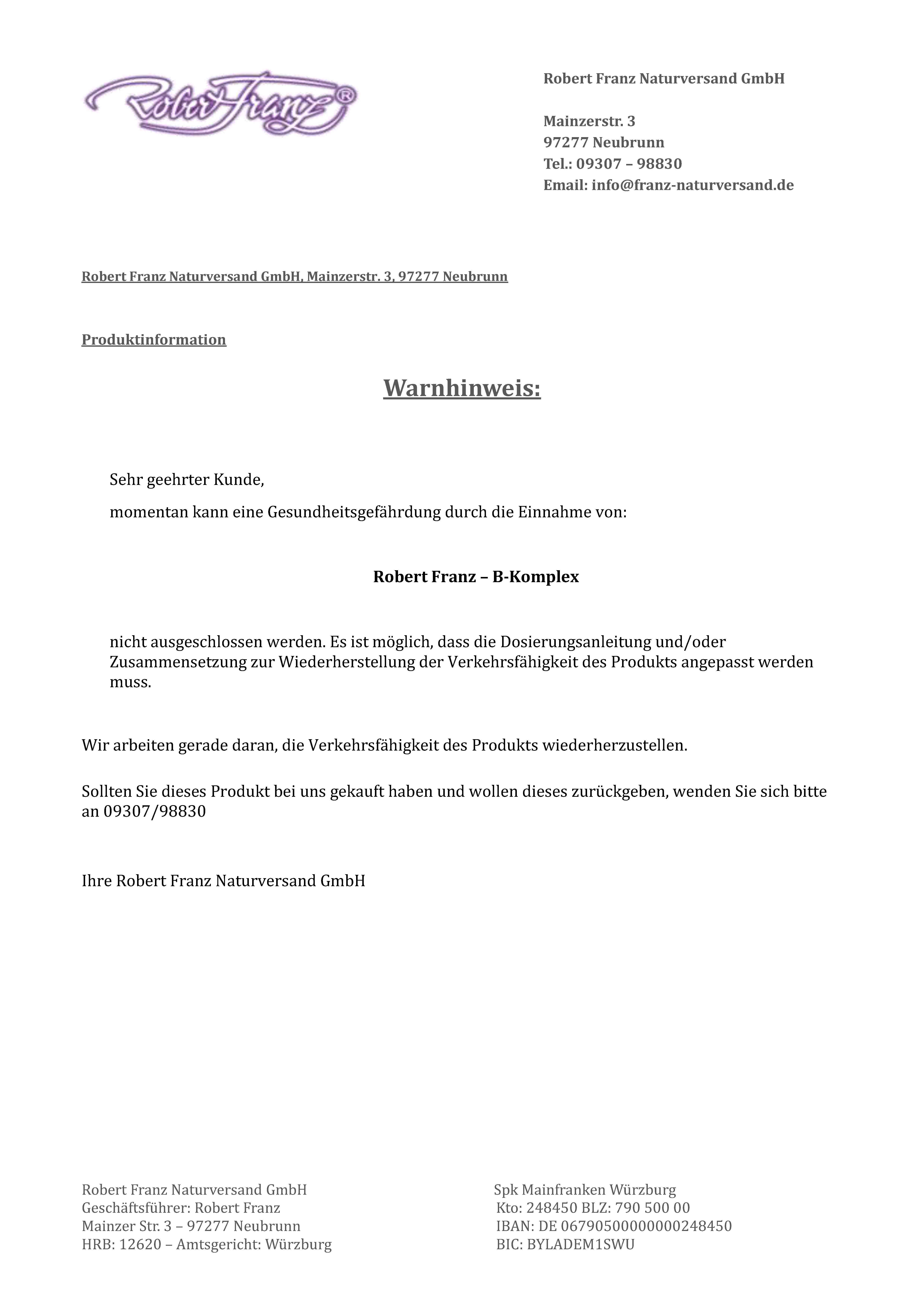 Inverkehrbringer: Robert Franz Naturversand GmbH