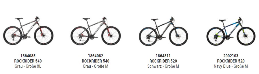 Decathlon ruft mehrere Modelle des Mountainbikes Rockrider 520 und 540 der Marke BTWIN zurück. Wie das Unternehmen mitteilt, wurde im Rahmen von Untersuchungen festgestellt, dass bei bestimmten Farben und Rahmengrößen die Gefahr eines Rahmenbruchs besteht. Im Gebrauch kann dies dazu führen, dass der Fahrer stürzt. Für Nutzer besteht dadurch ein Verletzungs- und Unfallrisiko!