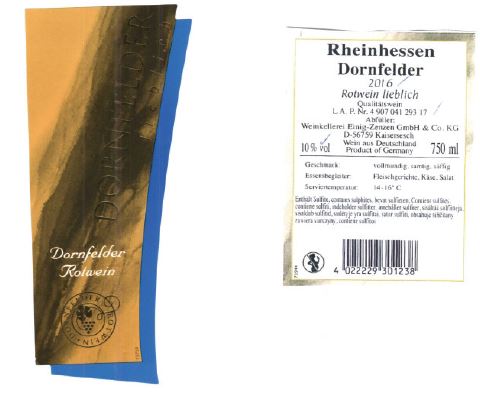 Die Wein- und Sektkellerei Einig-Zenzen GmbH ruft 2016er „Rheinhessen Qualitätswein Dornfelder lieblich“ Wein zurück. Wie das Unternehmen mitteilt, kann es bei den betroffenen Flaschen zu einer Nachgärung kommen. In diesem Fall könnte es beim Öffnen der Flasche zu einer heftigen Druckentladung kommen, im Extremfall könnten die Flaschen bersten. Hierbei kann es durch umherfliegende Glassplitter oder herausschnellende Korken zu ernsthaften Verletzungen kommen.