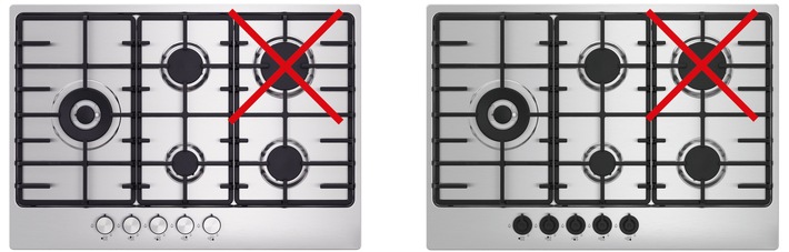 Kunden, die ein ELDSLÅGA Gaskochfeld vor dem 1. Januar 2018 erworben haben, werden dringend gebeten, den Schnellbrenner in der oberen rechten Position (siehe rotes X) nicht mehr zu nutzen, bis der technische Kundendienst die Reparatur vorgenommen hat. Alle anderen Brenner sind sicher im Gebrauch.