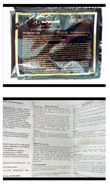 Gesundheitsgefahr – p-Phenylendiamin (PPD) in Henna Haarfärbemittel „Black Rose“