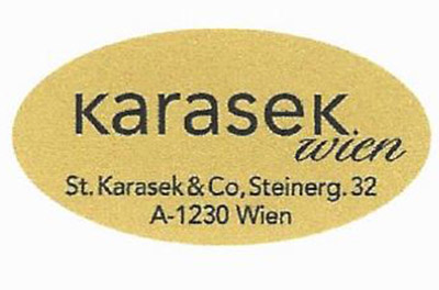 Aufschrift: Karasek Wien, www.karasek.co oder Karasek Wien Steinergasse 32