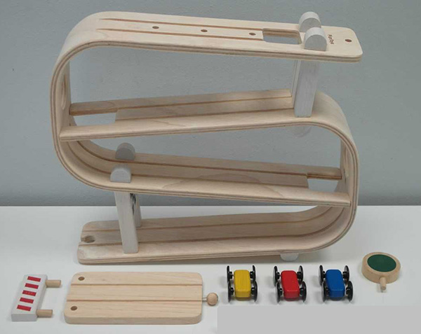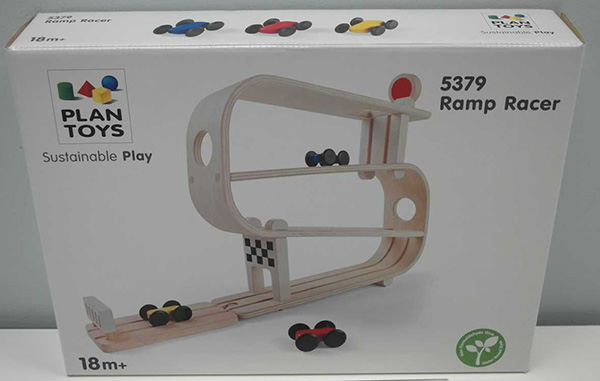 Das europäische Schnellwarnsystem RAPEX informiert über Erstickungsgefahr durch Kleinteile bei unten abgebildeter Rampenbahn mit Autos von Plan Toys.
