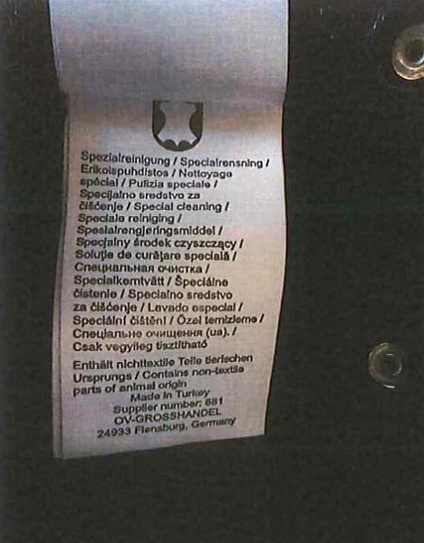 | Produktrisiko: | Die Menge an Chrom (VI) in den Lederteilen des Rock’s ist zu hoch (gemessener Wert bis zu 43 mg / kg). Chrom (VI) ist sensibilisierend und kann allergische Reaktionen auslösen. |